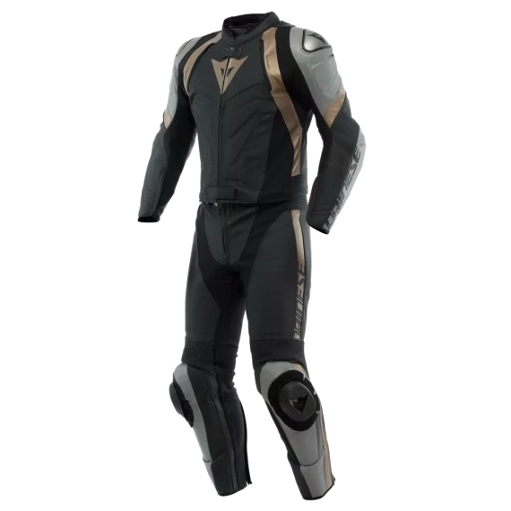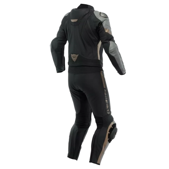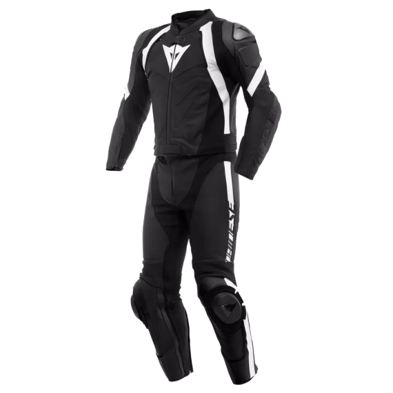 Dainese Avro 4 todelt motorsykkeldress laget med premium Tutu kuskinn, bestående av en motorsykkeljakke og bukser sammen med en komfortabel og motstandsdyktig glidelås som går rundt midjen.