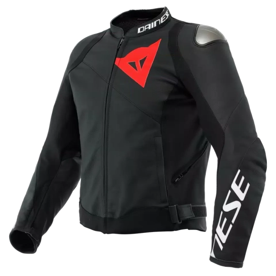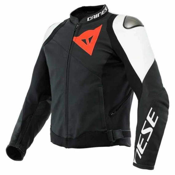 Dainese Sportiva motorsykkeljakke, laget av mykt og motstandsdyktig Tutu okseskinn, med EN 1621.1-sertifiserte Pro-Armor interne beskyttere, som samtidig garanterer maksimal beskyttelse, fleksibilitet og bevegelsesfrihet på grunn av ventilasjon over 40 % av overflaten.