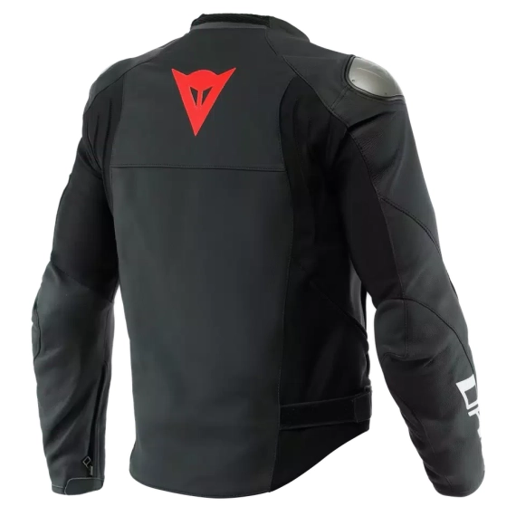 Dainese Sportiva Jacket er utstyrt med en baklomme for å sette inn ryggbeskytteren, borrelås på hoftene for å justere passformen, og to sideventilasjonsåpninger som, i tilfelle temperaturøkning, hjelper og gjenoppretter optimal kjølighet, det samme gjør den pustende Nanofeel® fôr med sølvionbehandling.