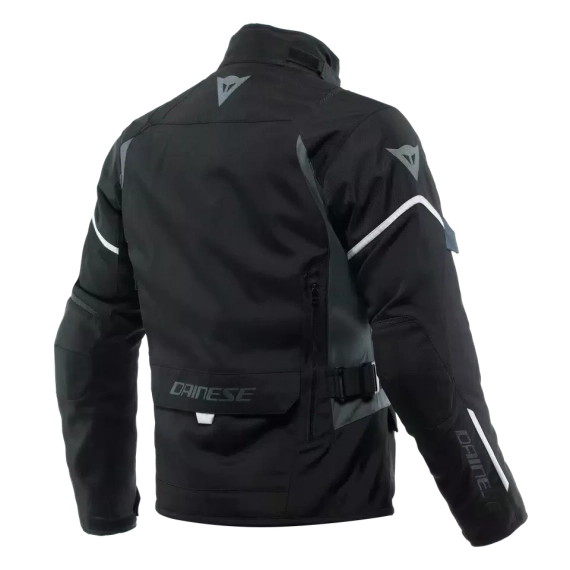 Tekstiljakke fra Dainese med D-Dry membran. Avtagbart innerfor. Lomme for ryggskinne og glidlås i livet for sammenkobling med dainesebukser.